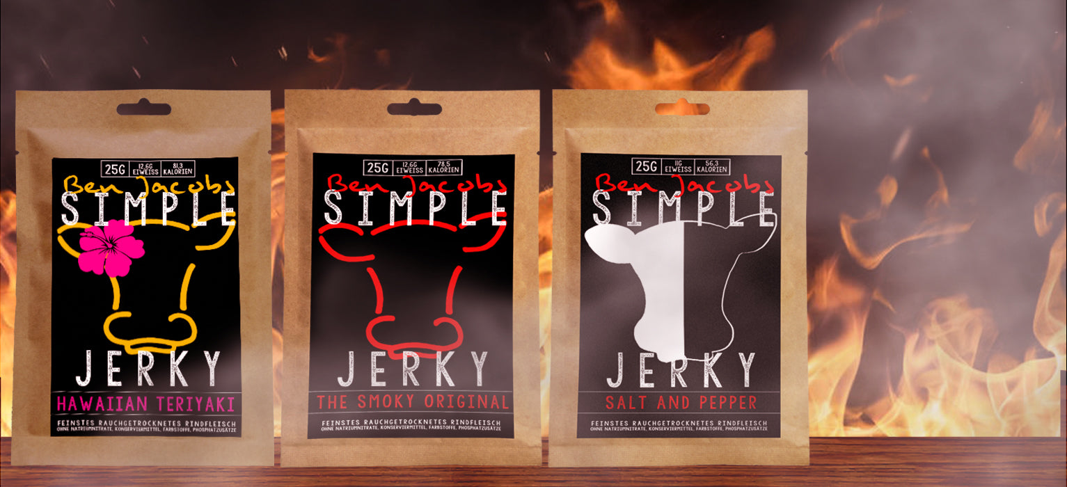 Leder du efter en proteinrig, fedtfattig og utroligt lækker snack? Simple Jerky står for højkvalitets Beef Jerky lavet af de bedste ingredienser – perfekt til sportsfolk, friluftsentusiaster og kødelskere. Oplev den ægte smag af håndlavet tørret kød!
